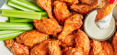 Toss the wings with the butter mixture to coat in a large bowl and serve with dressing on the side.